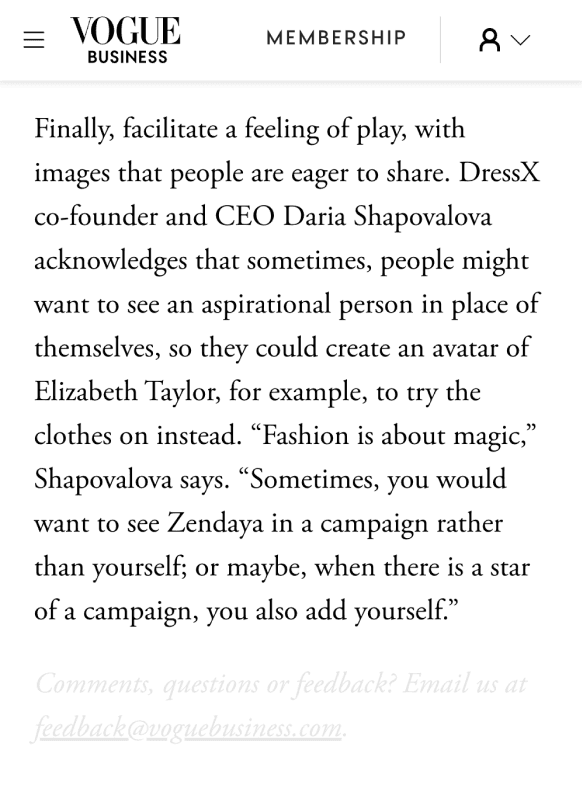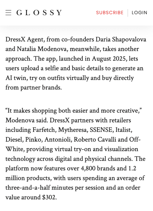 Our AI marketplace also offers AI-powered fashion conversations and curated product discovery, allowing customers to search for products using prompts, photos, or URLs, for example, to find celebrity look-alike outfits.