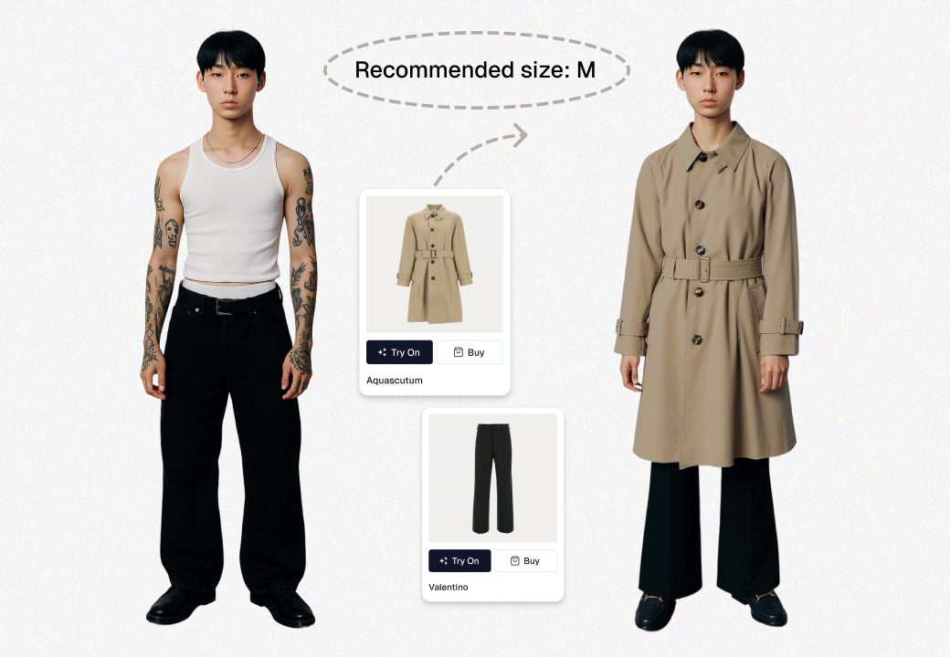 Our AI sizing recommendation tool can be trained on your brand’s specific garment measurements to deliver accurate, personalized size guidance based on their unique body shape and measurements.